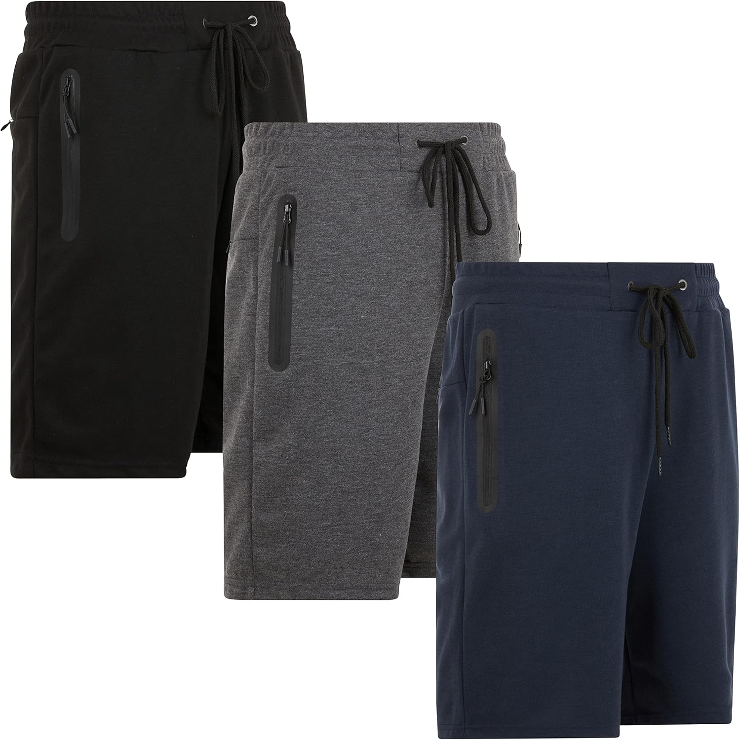 Mens 3 Pk Terry Cotton Casual Gym Shorts for Men Athletic Workout Training Sweat Shorts with Zipper Pocket