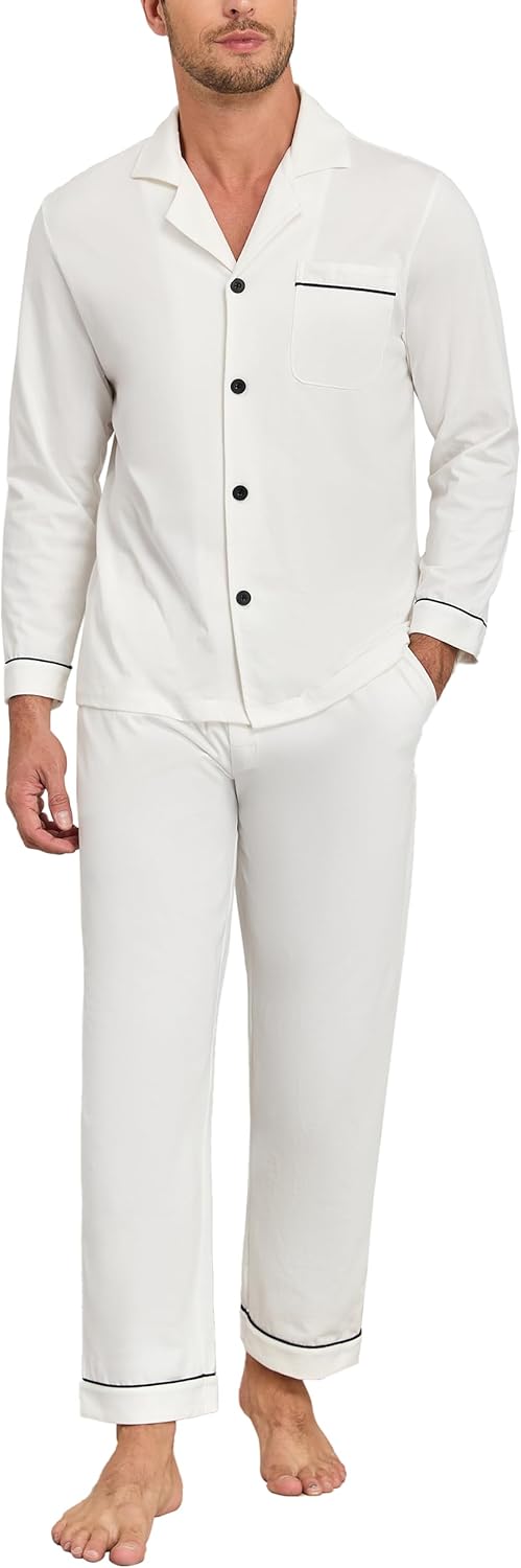- WELL-FITTING & ELEGANT: The pajamas set for men feature a classic button-down top with a notched collar, a chest pocket on the left, and elegant contrast piping. These details create a sophisticated look, allowing any man to exude maturity and confidence while wearing them.