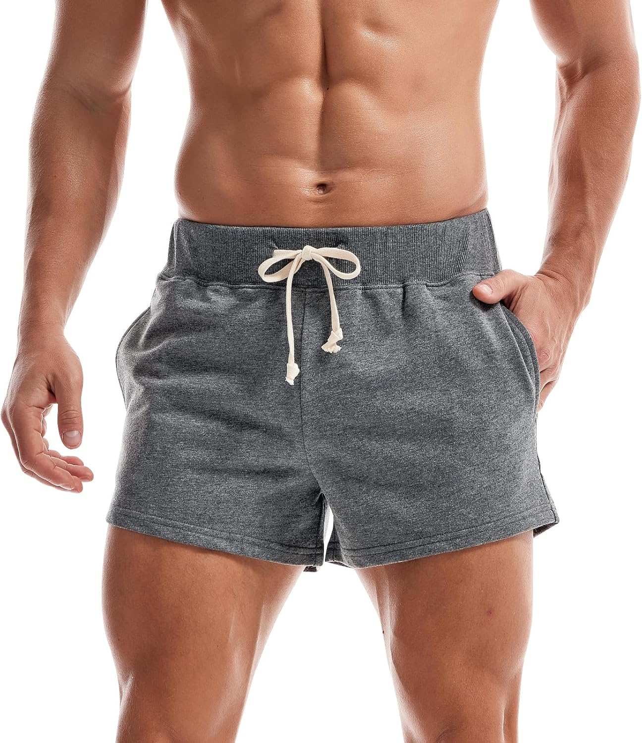 Mens Sweat Shorts Cotton 3 inch Training Workout Gym Shorts Casual Running Shorts with Pockets